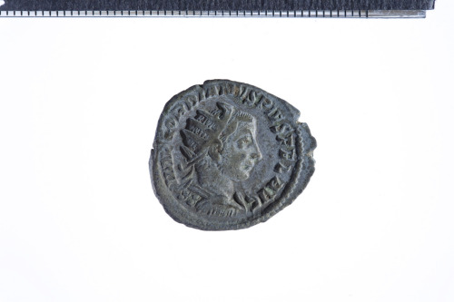 Dritto: Busto radiato di Gordiano III a d. con corazza, di tre quarti di spalle; contorno perlinato.. Rovescio: Fortuna seduta a s., reggente cornucopia nella s. e timone nella d.; ai piedi del trono, ruota; contorno perlinato.