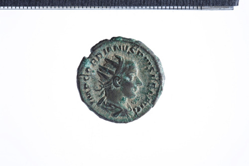 Dritto: Busto radiato di Gordiano III a d. con corazza e paludamentum, di tre quarti di spalle; contorno perlinato.. Rovescio: Apollo seduto a s., reggente ramo nella d. protesa; braccio s. appoggiato su lira; contorno perlinato.