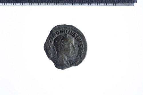 Dritto: Busto laureato di Gordiano III a d. con corazza (?) e paludamentum, di tre quarti di spalle; contorno perlinato.. Rovescio: Sol stante in posizione frontale, la testa volta a s., reggente globo nella s. ; contorno perlinato.