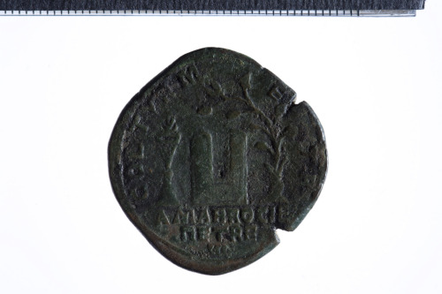 Dritto: Busto laureato di Gordiano III a d. con corazza e paludamentum, di tre quarti di spalle; contorno perlinato.. Rovescio: Due meteoriti su un'unica base; a s., altare acceso; a d. albero di olivo; all'esergo, murice; contorno perlinato.