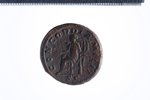 Dritto: Busto laureato di Gordiano III a d. con corazza e paludamentum, di tre quarti di spalle; contorno perlinato.. Rovescio: Concordia seduta a s., reggente doppia cornucopia nella s. e patera nella d. protesa; contorno perlinato.