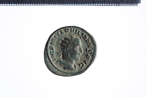 Dritto: Busto radiato di Filippo I a d., con corazza (?) e paludamentum, di tre quarti di spalle; contorno perlinato.. Rovescio: Annona stante a s. reggente cornucopia nella s. e spighe nella d. protesa; ai suoi piedi, modius contorno perlinato.