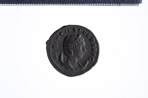 Dritto: Busto diademato e drappeggiato di Otacilia a d. su crescente, di tre quarti in avanti; contorno perlinato.. Rovescio: Concordia seduta a s. reggente doppia cornucopia nella s. e patera nella d. protesa; a s., altare; contorno perlinato.