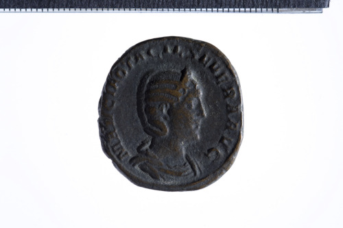Dritto: Busto diademato e drappeggiato di Otacilia a d., di tre quarti in avanti; contorno perlinato (?).. Rovescio: Concordia seduta a s., reggente doppia cornucopia nella s. e patera nella d. protesa; contorno perlinato.
