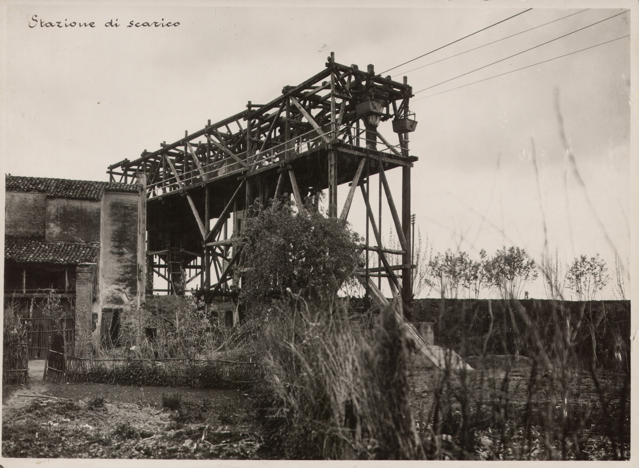 Stazione di scarico Montegrotto T., anni Quaranta. Teleferica della ditta Bonetti: il terminale a Mezzavia. (racc. Ditta Bonetti).