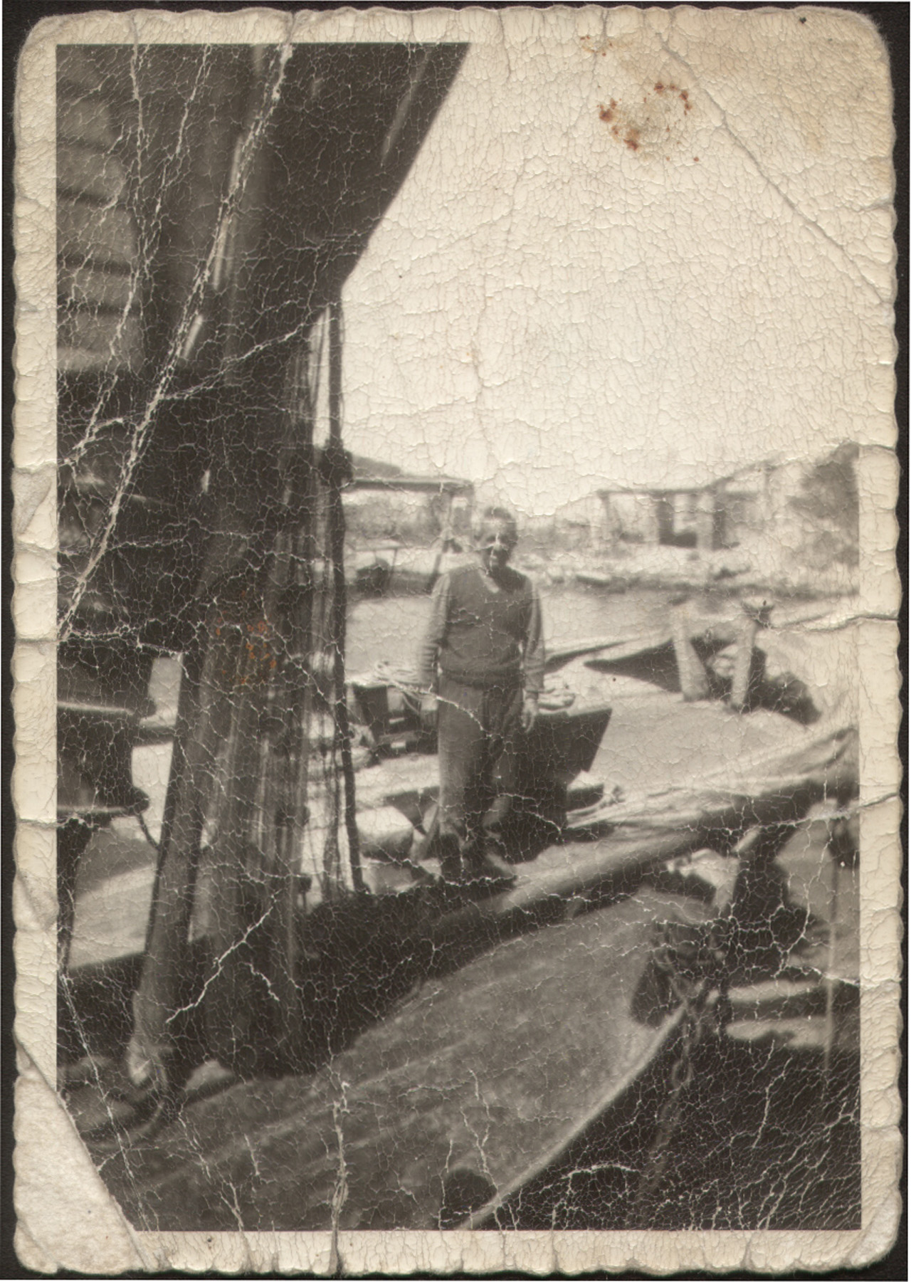 Foto ricordo di un barcaro a bordo del burcio San Domenico al cementificio di Chioggia.