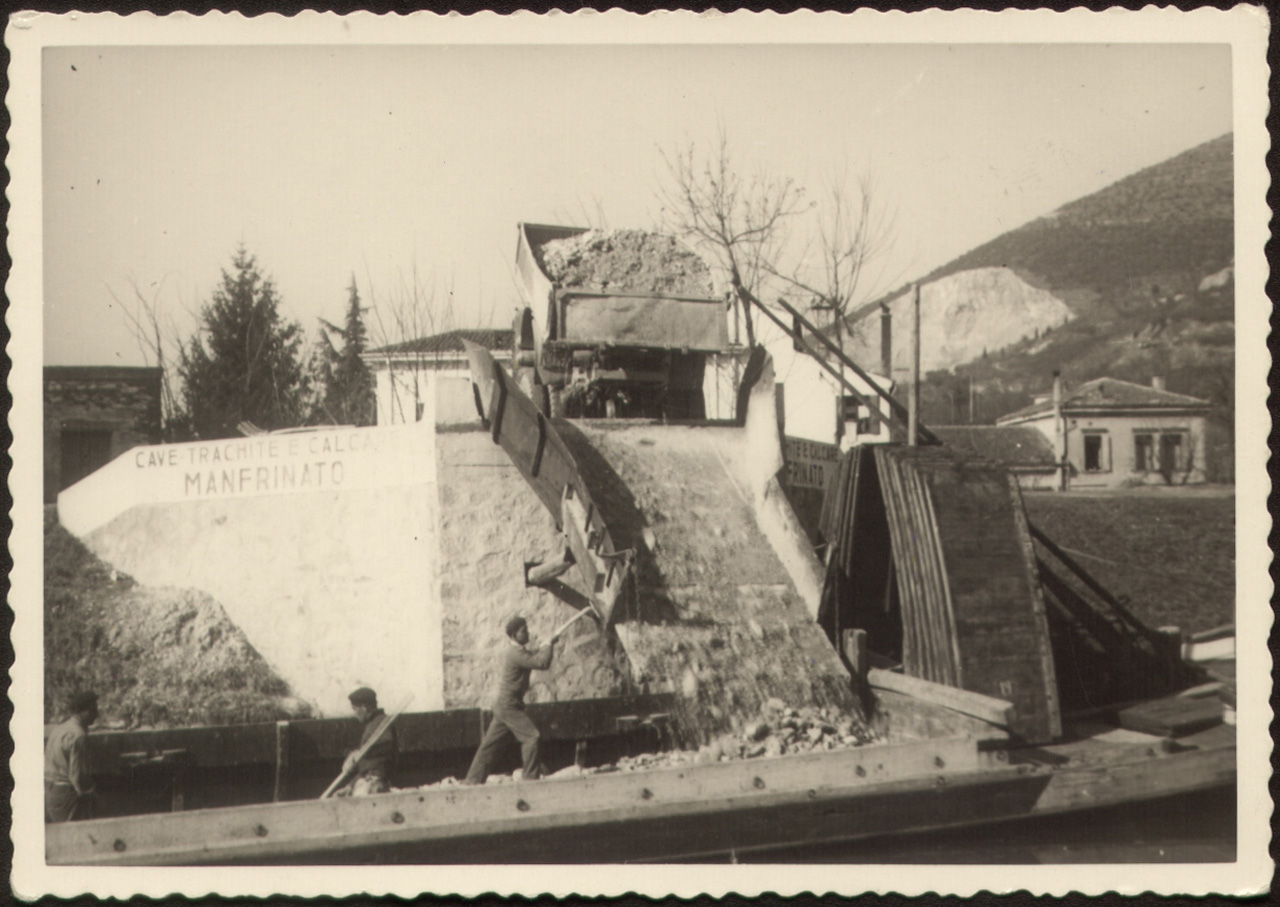 Carico della pietra trachite sulle barche al porto di Monselice.