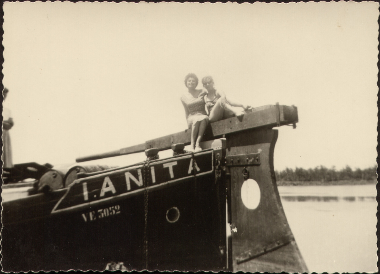 Foto ricordo sul burcio Anita I ormeggiato nel fiume Po.