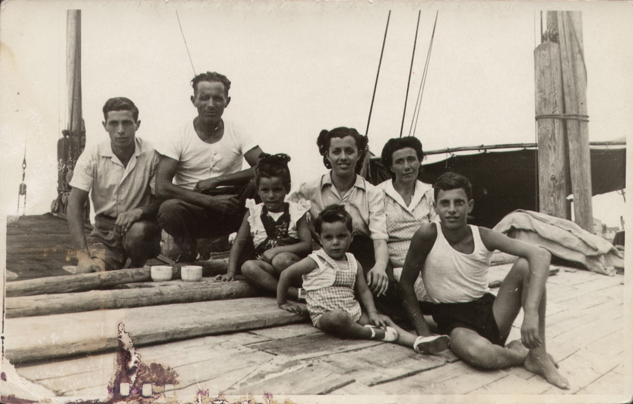 Foto ricordo della famiglia Cappellozza sul suo burcio Marco Polo a Venezia.