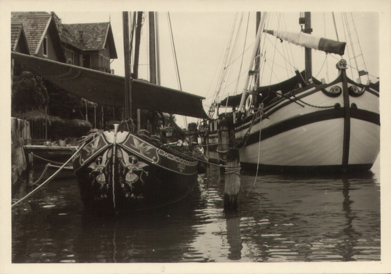Un bragozzo e un trabaccolo ormeggiati al Lido di Venezia.