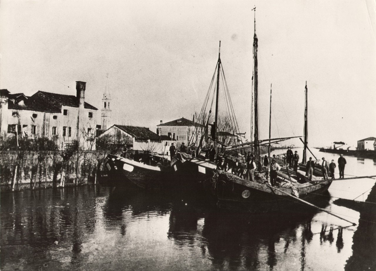 Bovolenta, anni Cinquanta. Una bella immagine di tre "burci" ormeggiati "alai" nel canale di Pontelongo (o Vigenzone).