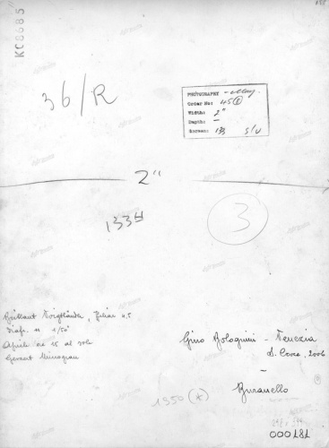 - ISCRIZIONI sul supporto primario: verso: in basso a destra - D - a matita -