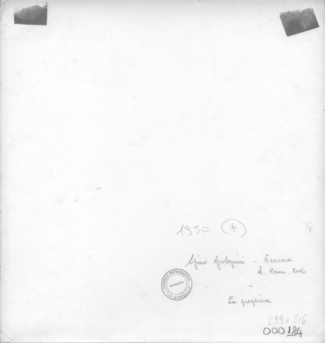 - ISCRIZIONI sul supporto primario: verso: in basso a destra - D - a matita -