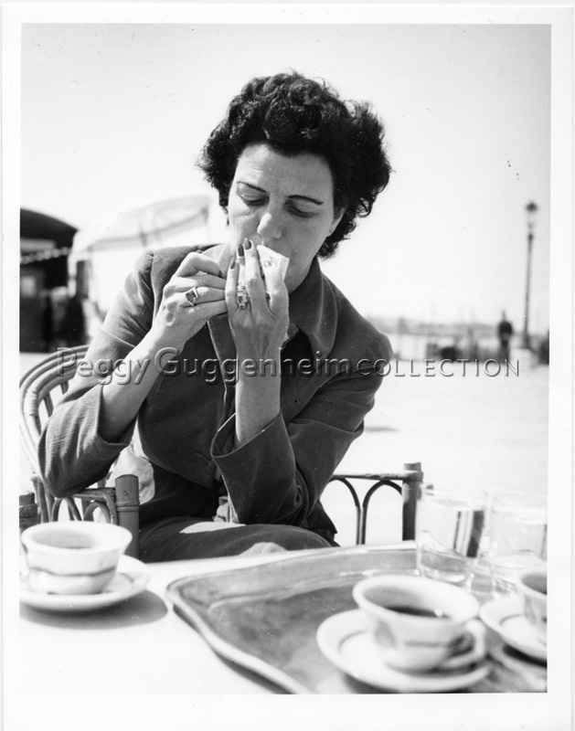 Peggy Guggenheim a un caffè in Riva degli Schiavoni, Venezia, 1949