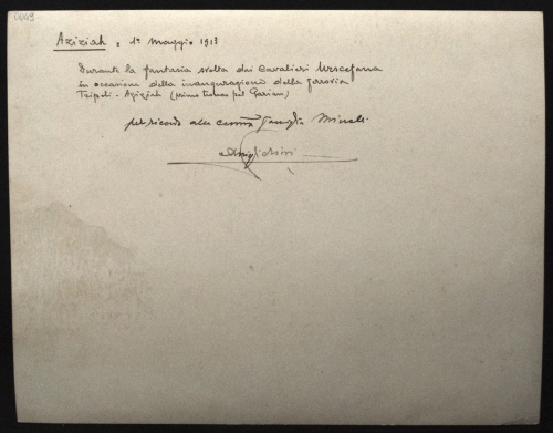 - NOTIZIE STORICO CRITICHE Fotografia individuata da Giannantonio Paladini nel 2001 e soggettata: "Bengasi 1914" (cartella n. 10).