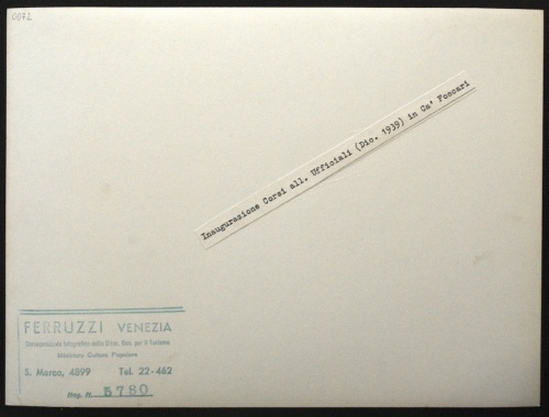 - NOTIZIE STORICO CRITICHE Fotografia individuata da Giannantonio Paladini nel 2001 e soggettata: "Inaugurazione Corso Allievi Ufficiali (dicembre 1939 XVIII)" (cartella n. 13).