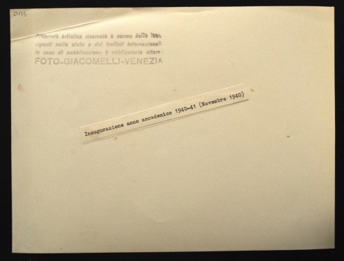 - NOTIZIE STORICO CRITICHE Fotografia individuata da Giannatonio Paladini e soggettata: "Inaugurazione 1936" (cartella n. 19). Sul medesimo supporto è presente anche la nota manoscritta: "Saggio Treccani n. 2".