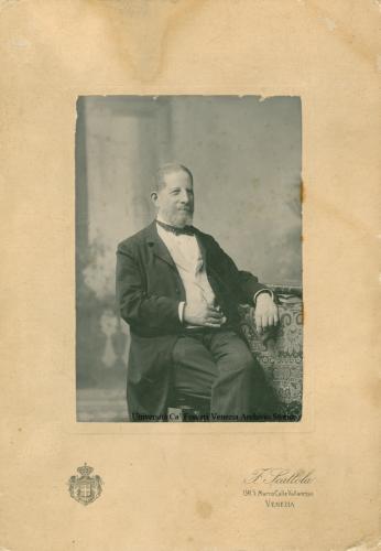 - NOTIZIE STORICO CRITICHE Fotografia contenuta in una cartella gialla ("Archivio Castelnuovo") come esemplare n. 11 dell'Archivio aggregato Enrico Castelnuovo. Enrico Castelnuovo fu prodirettore (dal 26.05.1905 al 30.06.1905), poi direttore (dal 01.07.1905 al 12.02.1914) presso la Regia Scuola Superiore di Commercio di Venezia (oggi Università Ca' Foscari Venezia).
