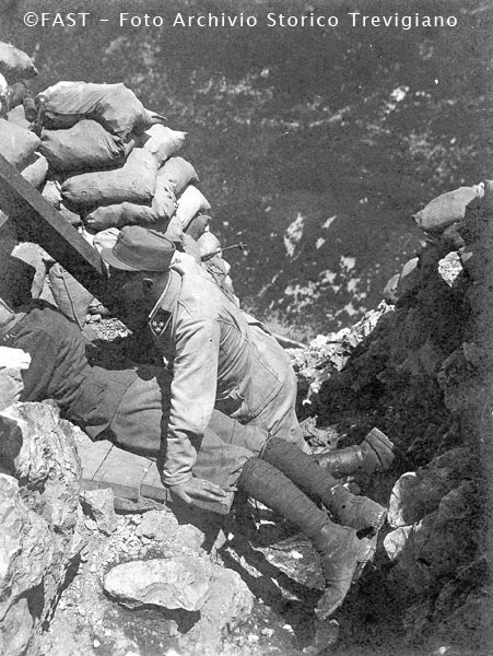 Due soldati austriaci in trincea, ad un posto di osservazione