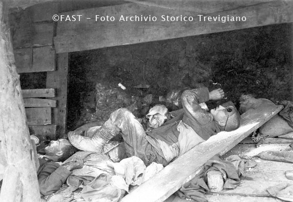 Soldati caduti in trincea, a causa di un attacco con gas asfissianti