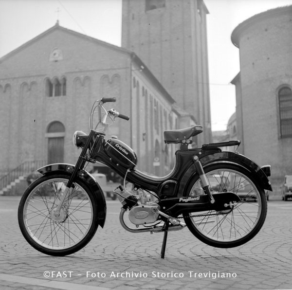 Treviso, un motorino della ditta Paglianti presso il Battistero