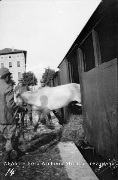 Un cavallo viene fatto smontare da un vagone ferroviario
