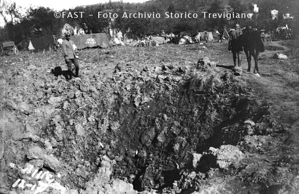Cratere prodotto da colpi di artiglieria nei pressi di un campo italiano