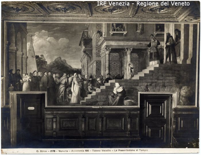 - ISCRIZIONI sul recto: in basso - O. Böhm - 2176 - Venezia - Accademia 626 - Tiziano Vecellio - La Presentazione al Tempio - fotografica -