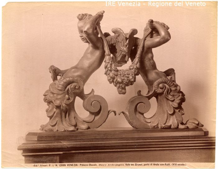- ISCRIZIONI sul recto: in basso - (Ed.ne Alinari) P.e I.a N.° 12899. VENEZIA - Palazzo Ducale, Museo Archeologico. Sala dei Bronzi, parte di Arale con Putti. (XVI secolo.) - fotografica -