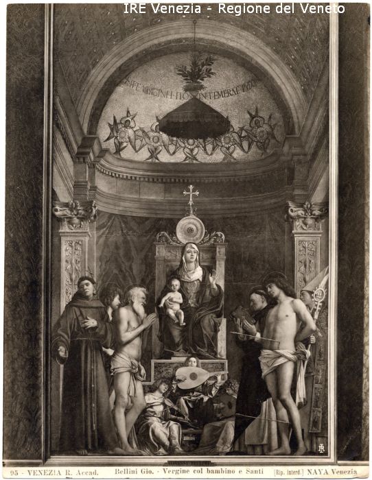- ISCRIZIONI sul recto: in basso - 95 - VENEZIA R. Accad. Bellini Gio. - Vergine col bambino e Santi/ [Rip. interd.] NAYA Venezia - fotografica -