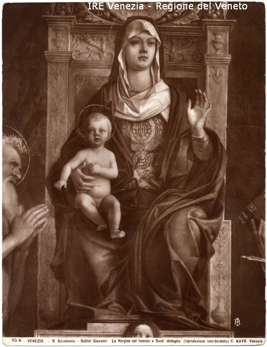 - ISCRIZIONI sul recto: in basso - 95 A - VENEZIA - R. Accademia - Bellini Giovanni La Vergine col Bambino e Santi (dettaglio) (riproduzione interdetta) C. NAYA Venezia - fotografica -
