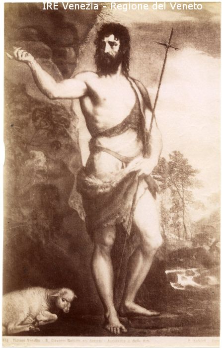- ISCRIZIONI sul recto: in basso - [...]14 Tiziano Vecellio - S. Giovanni Battista nel deserto - Accademia di Belle Arti/ P. Salviati - Venezia - fotografica -