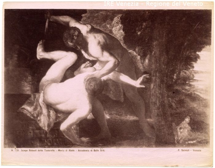 - ISCRIZIONI sul recto: in basso - N. 738 Jacopo Robusti detto Tintoretto - Morte di Abele - Accademia di Belle Arti./ P. Salviati - Venezia - fotografica -
