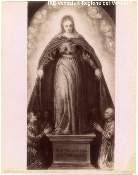 - ISCRIZIONI sul recto: in basso - 760. MADONNA E DEVOTI. TINTORETTO. ACCADEMIA/ P. SALVIATI VENEZIA - a matita -