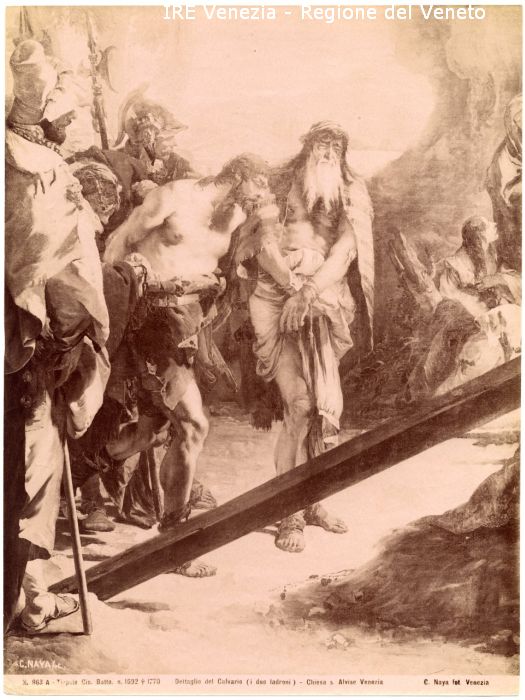 - ISCRIZIONI sul recto: in basso - N. 963 A - Tiepolo Gio. Batta. n. 1692 + 1770/ Dettaglio del Calvario (i due ladroni) - Chiesa s. Alvise Venezia/ C. Naya fot. Venezia - fotografica -