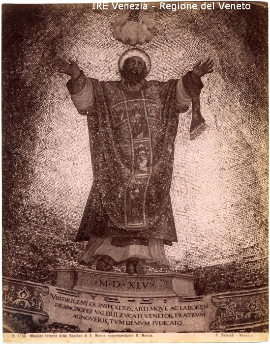 - ISCRIZIONI sul recto: in basso - N. 1155/ Mosaico interno della Basilica di S. Marco rappresentante S. Marco./ P. Salviati - Venezia - fotografica -
