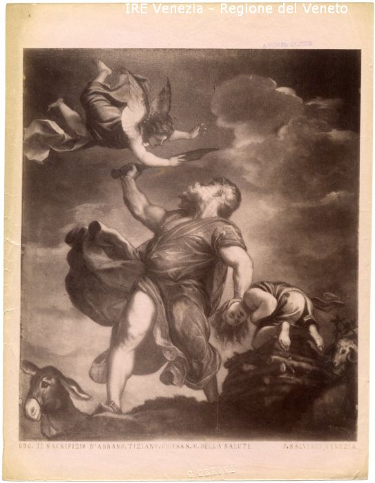 - ISCRIZIONI sul recto: in basso - 696. IL SACRIFIZIO D'ABRAMO. TIZIANO. CHIESA S. M. DELLA SALUTE/ P.SALVIATI VENEZIA - fotografica -