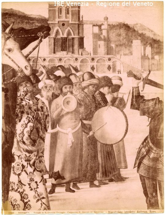 - ISCRIZIONI sul recto: in basso - 11892 - VENEZIA - Trionfo di S. Giorgio Dettaglio (Carpaccio) S. Giorgio de' Schiavoni. Riproduzione Interdetta Anderson, Roma. - fotografica -
