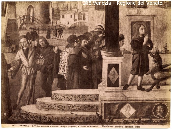 - ISCRIZIONI sul recto: in basso - 11877 VENEZIA S. Trifone ammansa il basilisco Dettaglio (Carpaccio) S. Giorgio de' Schiavoni./ Riproduzione Interdetta Anderson, Roma. - fotografica -