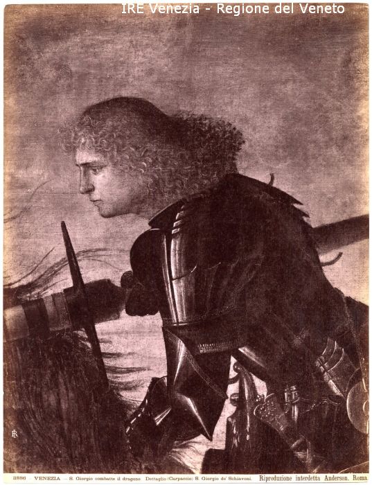 - ISCRIZIONI sul recto: in basso - 11886 - VENEZIA - S. Giorgio combatte il dragone Dettaglio(Carpaccio) S. Giorgio de' Schiavoni/ Riproduzione interdetta - Anderson, Roma. - fotografica -