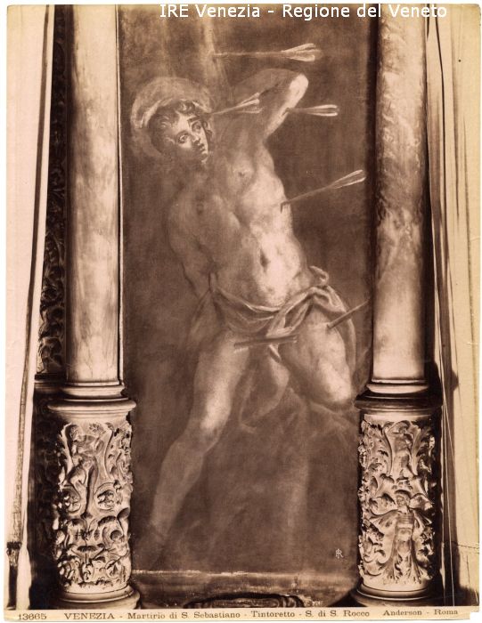 - ISCRIZIONI sul recto: in basso - 13665 - VENEZIA - Martirio di S. Sebastiano - Tintoretto - S. di S. Rocco Anderson - Roma - fotografica -