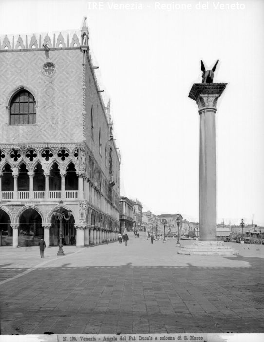 Venezia, piazzetta con la colonna di San Marco e palazzo Ducale verso riva degli Schiavoni