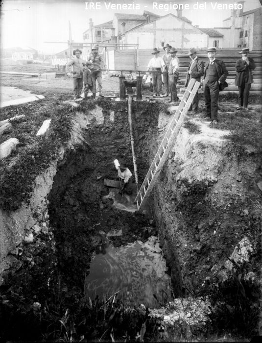 Venezia, Santa Marta, costruzione delle case popolari, particolare scavi delle fondazioni