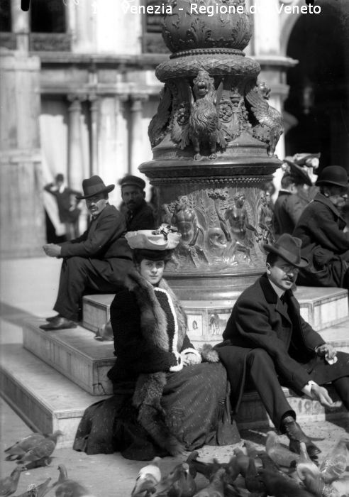 Venezia, piazza San Marco, turisti con piccioni di Filippi, Tomaso (XIX)