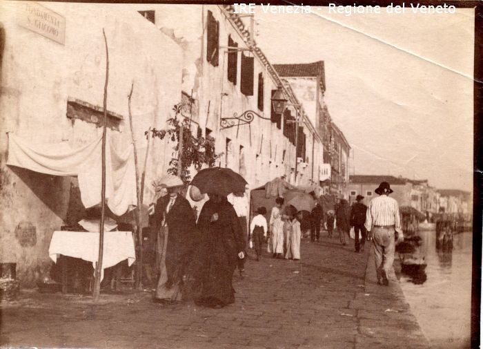 Venezia - Vita veneziana e lagunare - Scene e costumi - Manifestazioni religiose - Festa del Redentore - Giudecca : fondamenta S. Giacomo - Banchetti - Passanti