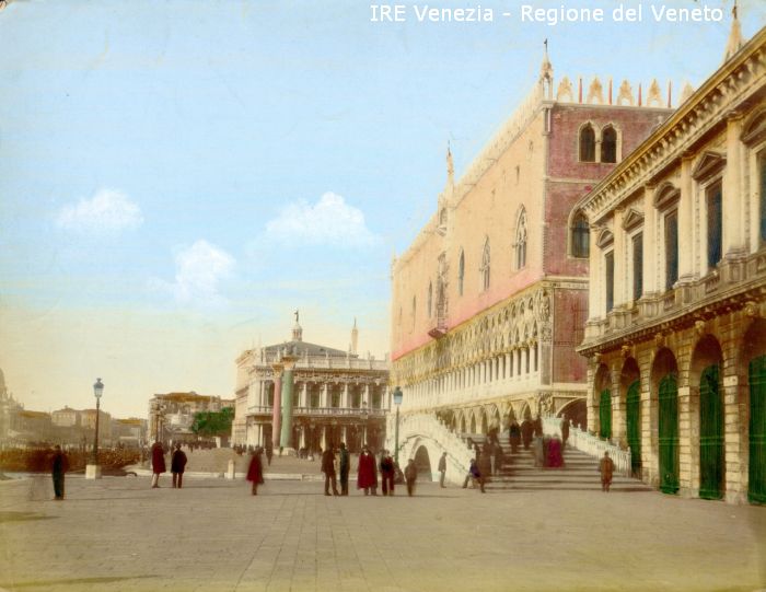 Venezia - Vedute, monumenti, luoghi - Centro storico - Area Marciana - Molo: ripreso da est - Riva degli Schiavoni - Prigioni Nuove - Ponte della Paglia - Palazzo Ducale - Colonna di S. Marco - Colonna di S. Teodoro - Biblioteca Marciana