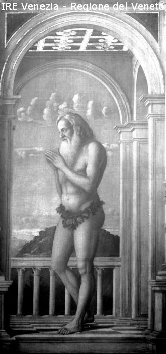 Venezia, chiesa di San Giovanni Crisostomo, riproduzione dipinto, Gerolamo da Santacroce, portella del vecchio organo, "S. Onofrio"