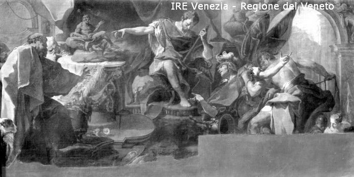 Venezia, chiesa di San Stae, sacrestia, riproduzione dipinto, G.B. Pittoni, Traiano che comanda a S. Eustachio di sacrificare agli idoli