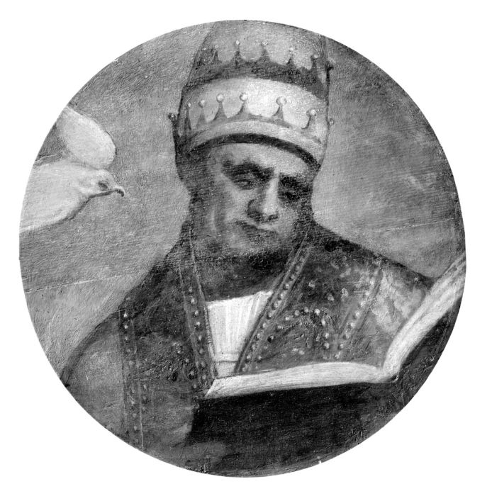 Venezia, chiesa della Salute, sacrestia, riproduzione dipinto, Tiziano, San Gregorio Magno