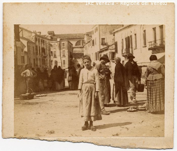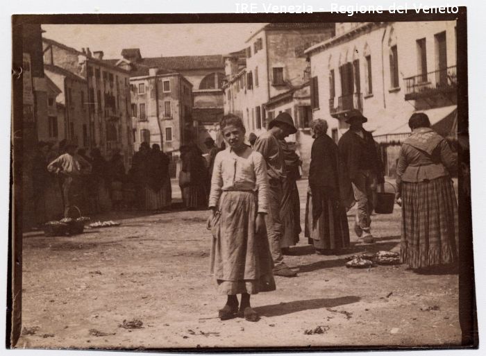 Venezia - Vita veneziana e lagunare - Scene e costumi - Mercato, negozi, bancarelle - Campo S. Margherita - Scena di mercato - Una bambina